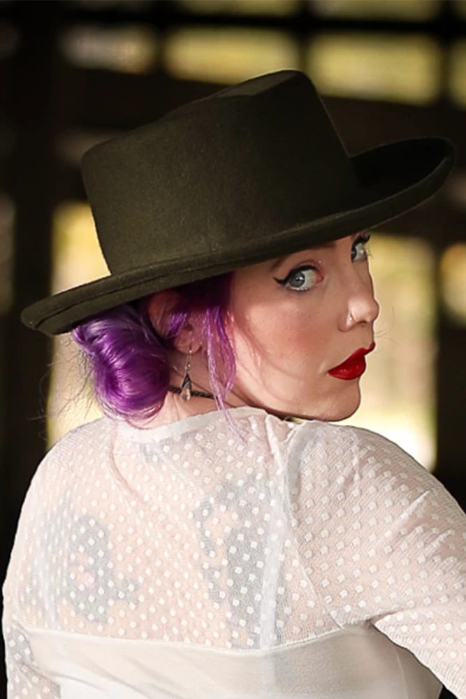 classic cowboy hat slight up brim strap