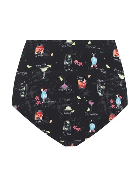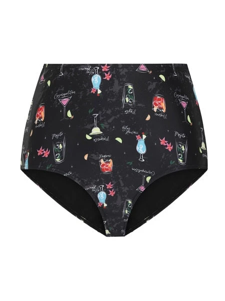 Our Cocktail Menu High Waist Brief is perfect for those days where you’re topping up that tan and sipping on Mojitos. She’s a high waisted style, covered in print of thirst-quenching cocktails! She matches perfectly with our Cocktail Menu Bikini Top, and can be garnished with a pair of our stylish unglasses!