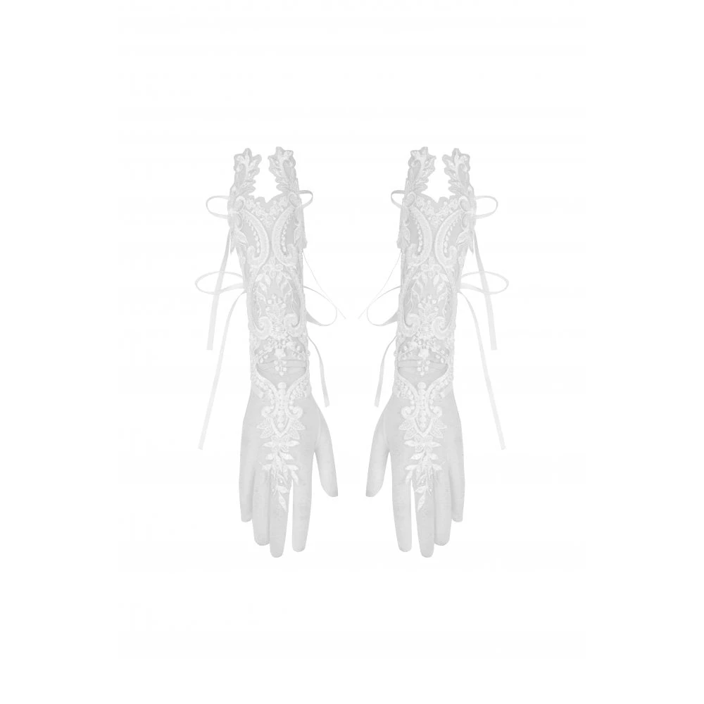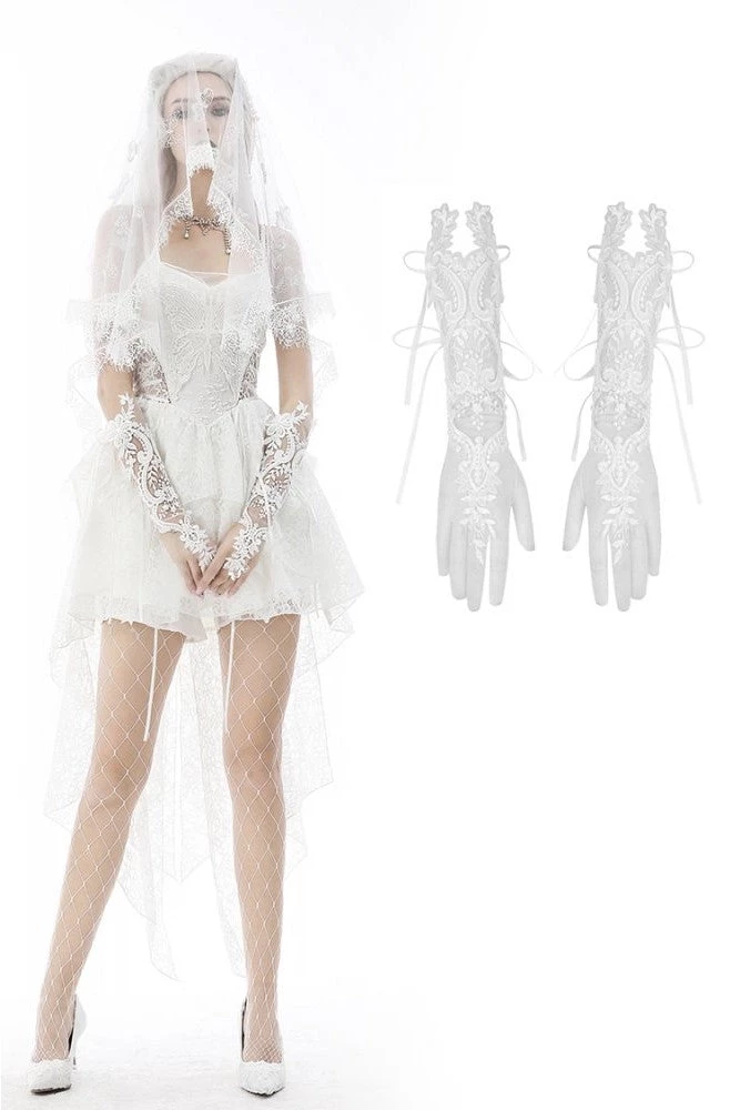 Dark In Love White Paisley Bridal Gloves Gothic