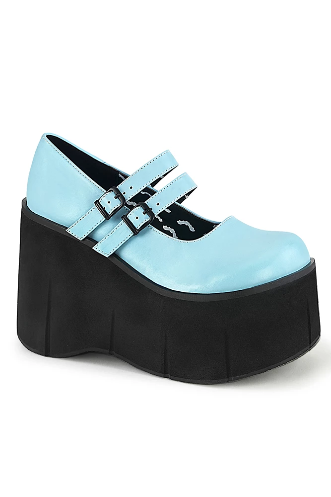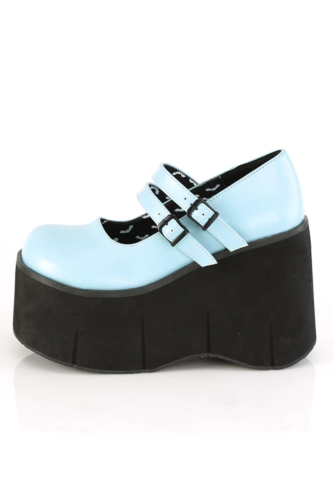 Demonia Gothic Platform Wedge Mary Janes In Blue Vegan Leather