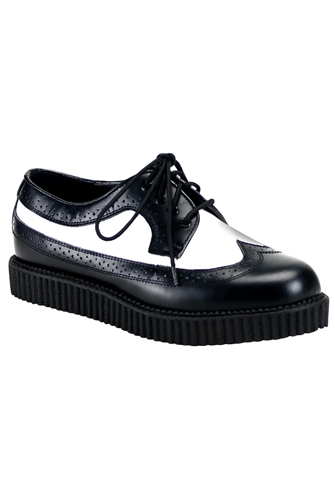 For our distinguished gentlemen, the Mens Black and White Oxford Shoes are for you. These vintage inspired black and white patent leather shoes are inspired by retro styles with the modern twist of the thick ridged black soles. Perfect for a night out with your significant other, look dapper with these shoes today.Â