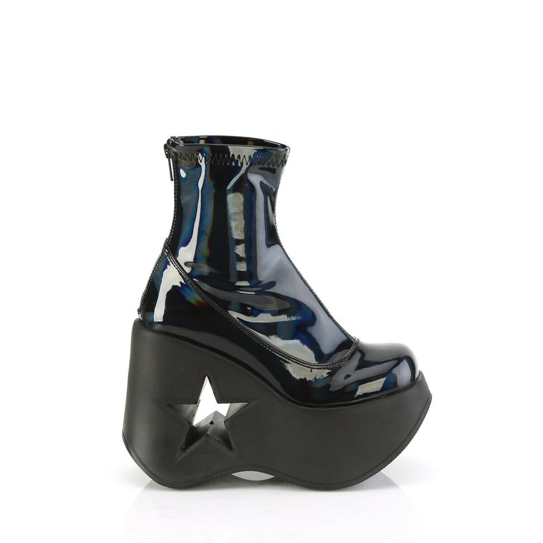 Demonia Shoes Dynamite Stretch Ankle Boot In Patent Holographic