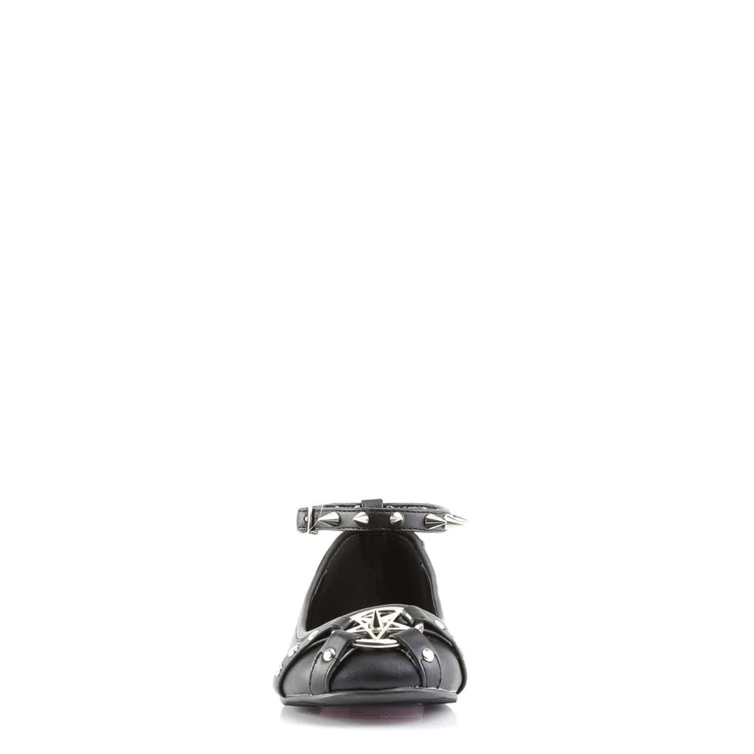 Ankle Strap Flat Featuring Studded Straps and Pentagram Ornament on Vamp and Buckle & Spikes Detail