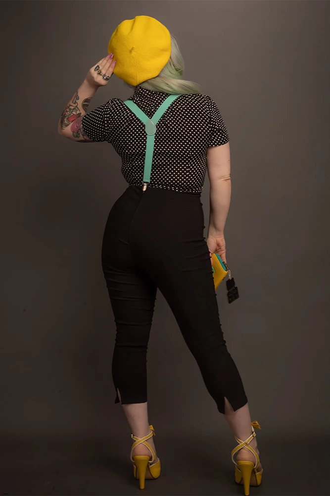 Rockabilly Gals don’t always wear dresses. These Black Cigarette Pants are perfect for the retro chicks out there. These highwaisted pants capri pants are perfect for a day of running around town. Pair them with one of our Pinup shirt shirts, and rock the day away.