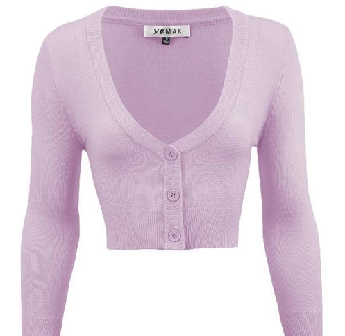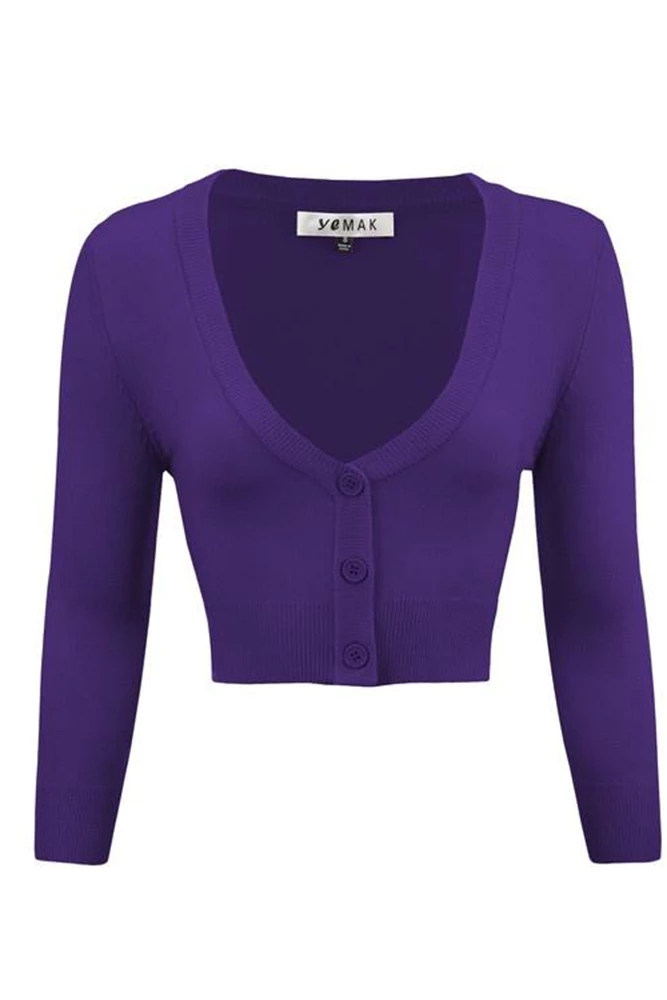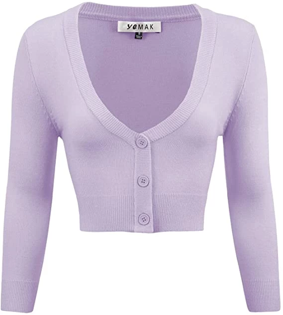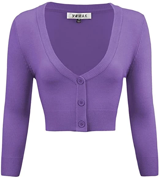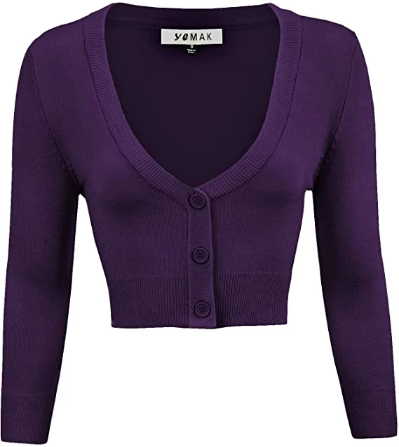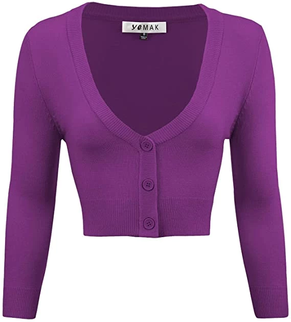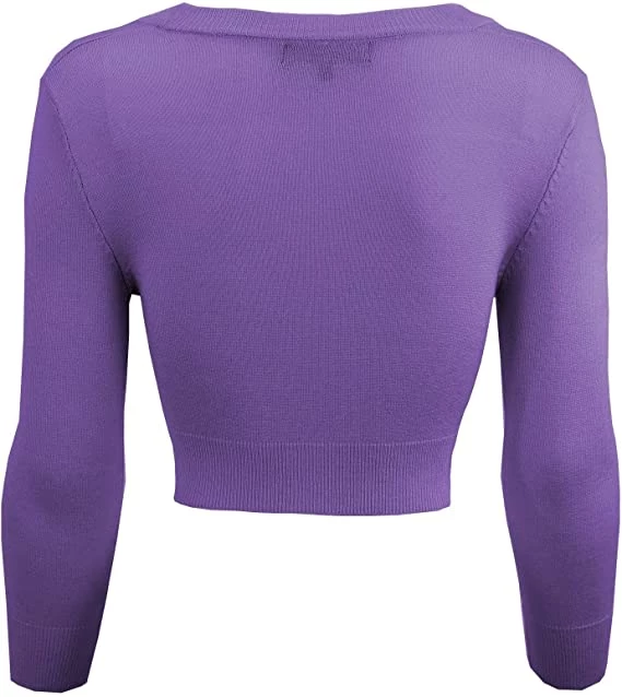 – 14″-15″ Crop Length, 3/4 Sleeves, Button Down, V-Neck Bolero Shrug Knit Cardigan Sweater for Woman that Hits Upper Waist Point.