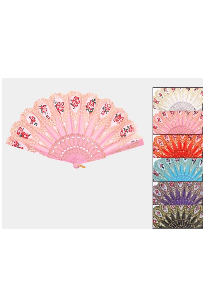 Elegant mix fabric hand fan with intricate floral designs and a dash of sparkle.Â