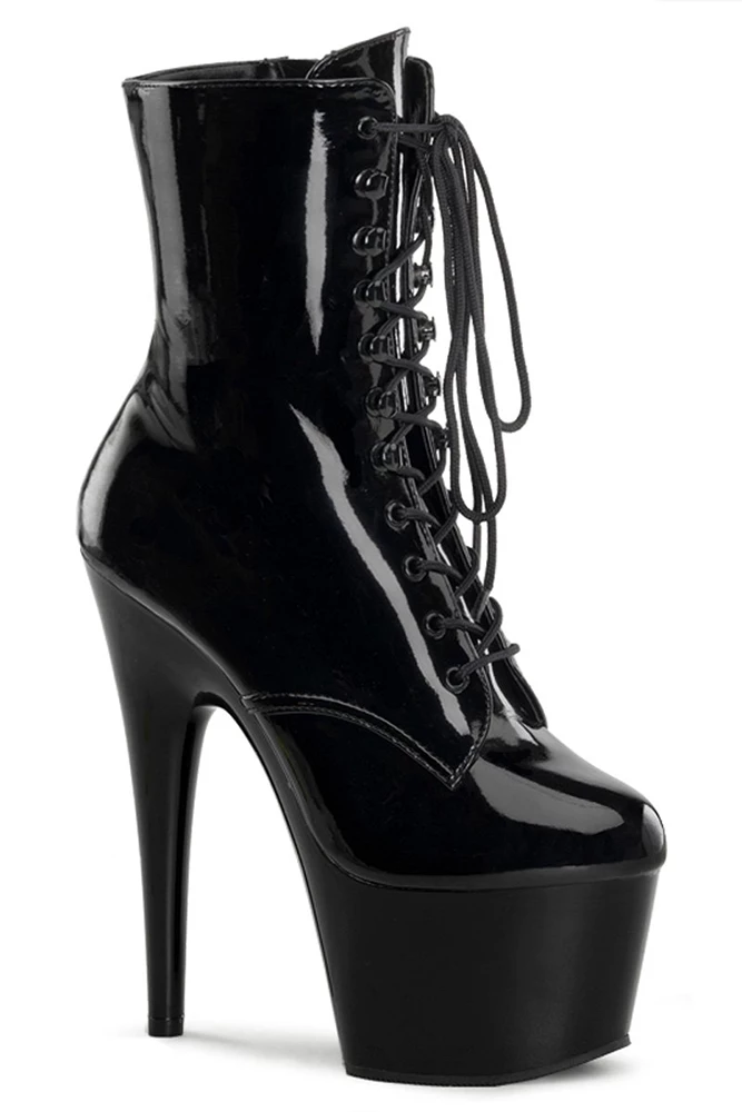 7″ (17.8cm) Stiletto Heel, 2 3/4″ (7cm) Platform Lace-Up Platform Ankle Boot, Full Inner Side Zipper