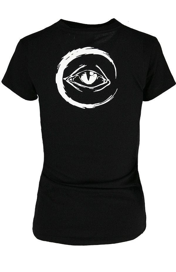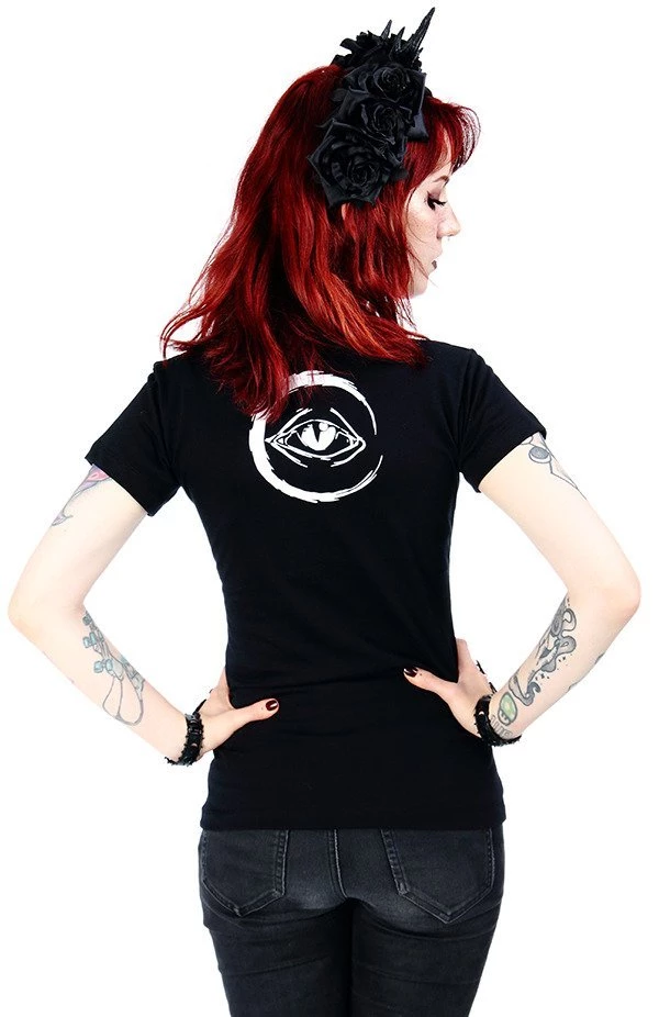 On the back there is printing of cat eye closed in harsh crescent moon.